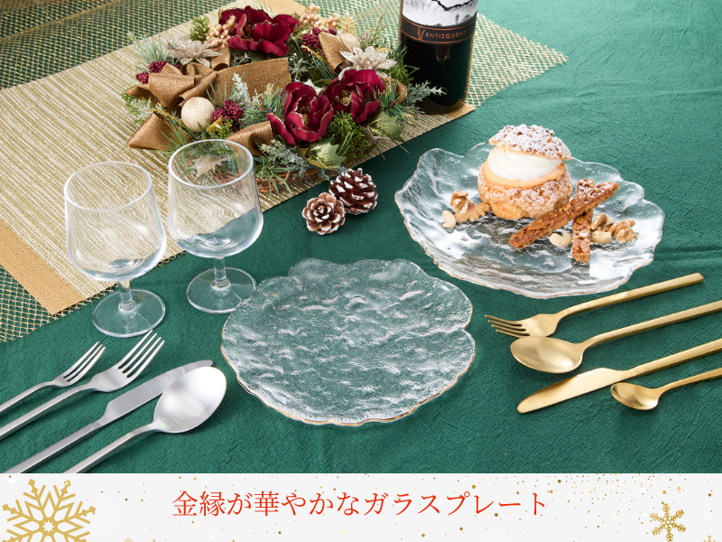 一足早く、ホリデーディナーのセッティングを☆ 2025年12月12日 新商品入荷のお知らせ 一枚でも食卓を素敵に演出してくれる 金縁が華やかなガラスプレート。 フチ部分のランダムな凸凹が個性的で クリスマスのディナーでケーキをのせても お正月にお刺身を盛り付けても、 フルーツをのせてもおしゃれに魅せてくれます。 人気商品なので、売り切れの際はご容赦ください。