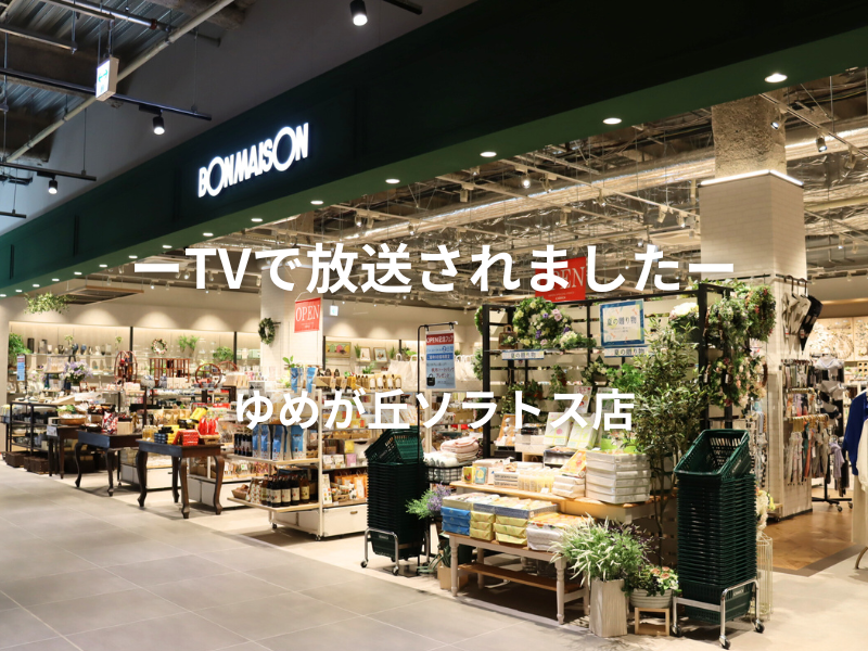 TV番組で「ゆめが丘ソラトス店」が紹介されました 2025年12月22日 お知らせ TV番組にて『ゆめが丘ソラトス店』が紹介されました! 朝日放送テレビ「M!LKじゃん!」で『ボンメゾンゆめが丘ソラトス店』が紹介されました。 番組内で、神奈川県にあるファミリー向けのショッピング施設「ゆめが丘ソラトス」で過ごし、 当店をゆっくりご覧になりながら、お子さんたちからお母さんへのプレゼントを探していました。 ≫ 11月11日 放送内容はこちら ≫11月18日 放送内容はこちら これからも、プレゼント選びに、自分へのご褒美に嬉しく楽しい商品を揃え 地域の皆様に愛される店づくりに努めてまいります。